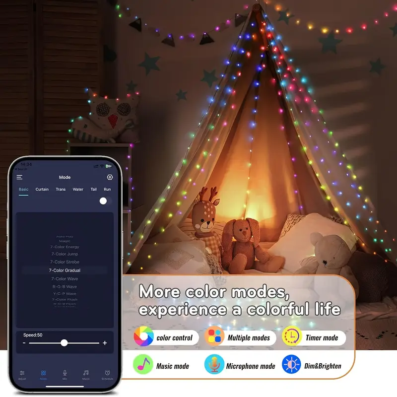 See 10-meetrine nutikas LED-valguskett 100 lambiga sobib ideaalselt