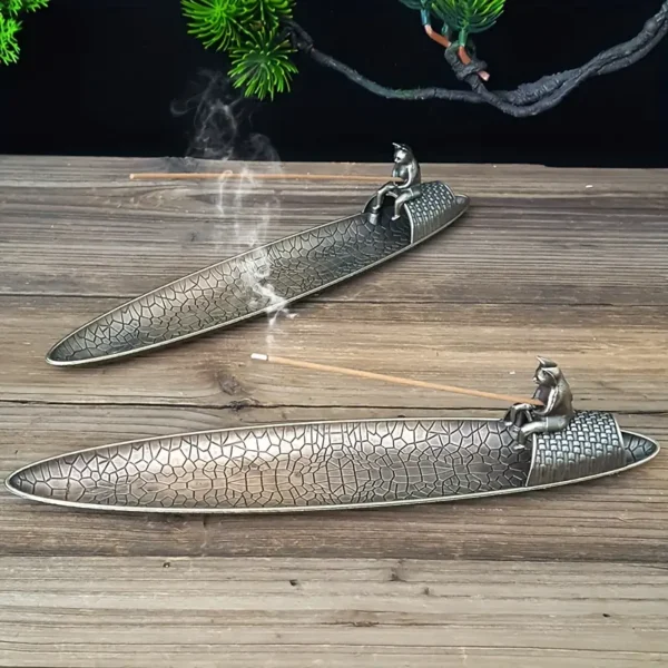 🌿 Elegantne paadikujuline viirukialus tsingisulamist. Vastupidav, stiilne ja sobib igasse interjööri. Ideaalne kingitus aroomiarmastajale.